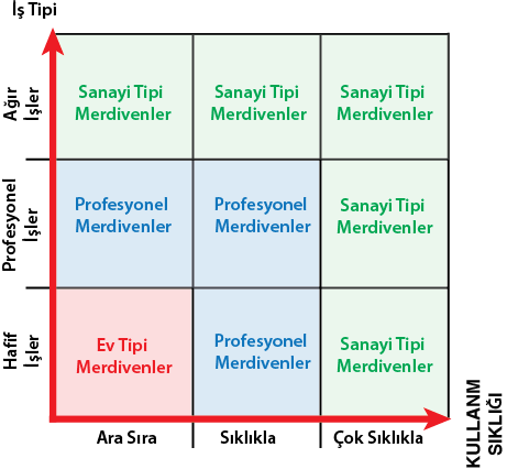 Bir merdiven kullanmayı planlıyorsanız, öncelikli olarak yapmanız gereken ne tür bir işte kullanacağınıza, ne sıklıkta kullanacağınıza ve en önemlisi üzerinde ağır bir iş yapılıp yapılmayacağına karar vermenizdir.